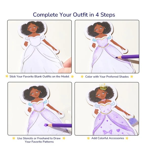 Įtraukianti veikla, leidžianti vaikams derinti drabužius, spalvas ir aksesuarus, paverčiant jų vaizduotę realybe per praktinį žaidimą. Puikiai tinka gimtadieniams, dovanoms ar vaizduotės žaidimams skatinti!