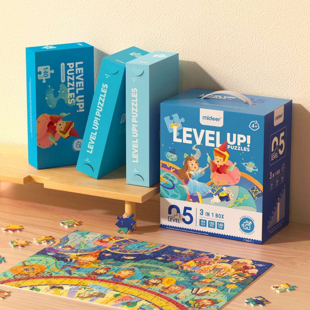 Level Up dėlionės serija skirta vaikų intelektiniam vystymuisi, nuo paprastų gyvūnų iki sudėtingų scenų, palaipsniui lavinant vaikų pažinimą. Įvairūs meno stiliai ugdo vaikų vaizduotę, o lygūs ir be aštrių briaunų kraštai užtikrina saugų žaidimą rankomis ir mokymąsi. Edukacijos seriją sudaro 8 lygiai.